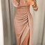 Deze off-shoulder avondjurk combineert verfijning, stijl en comfort in één prachtig ontwerp. Met een flatterende pasvorm, een elegante hoge split en een zachte glans in de stof is deze jurk ideaal voor diners, feesten of formele evenementen. De off-shoulder halslijn accentueert je schouders op een subtiele, vrouwelijke manier.