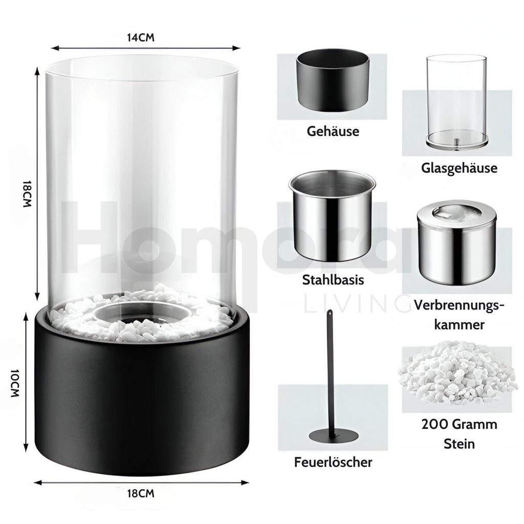 Gebruik de tafelhaard in de woonkamer, op het balkon of op het terras – perfect voor sfeervolle avonden binnen of buiten. De zachte vlammen brengen rust en gezelligheid, ideaal voor diners, ontspanning of als decoratief accent.