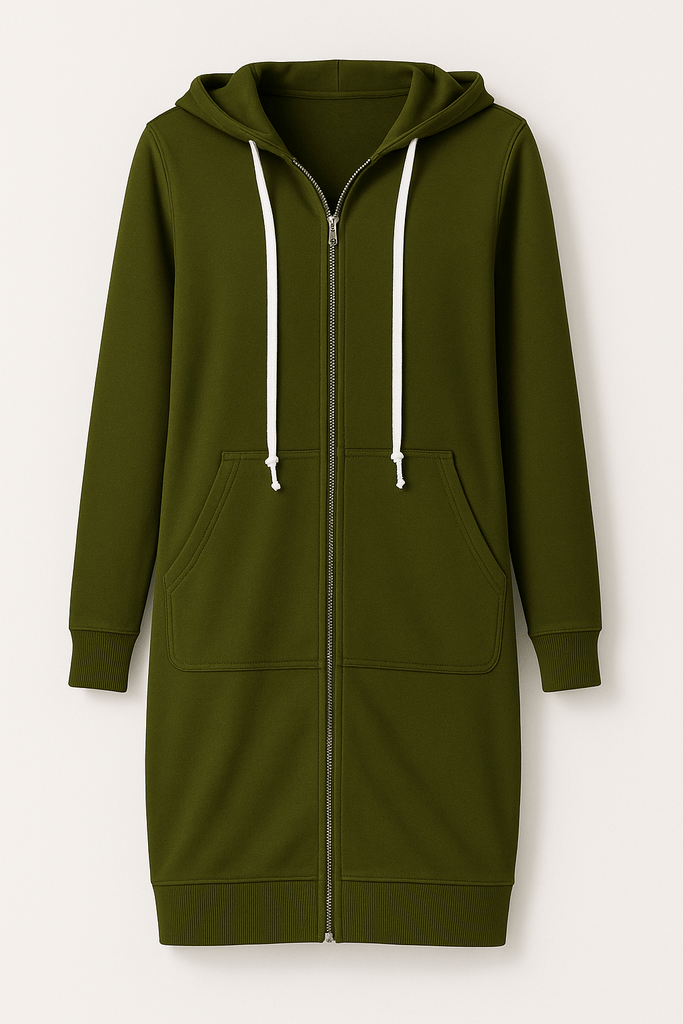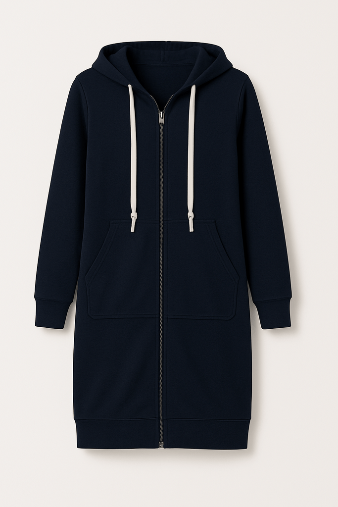 Het knielange ontwerp biedt extra warmte en comfort, terwijl het zachte, ademende materiaal zorgt voor draaggemak de hele dag door. Of je nu thuis blijft of eropuit gaat, deze hoodie past bij elke gelegenheid.